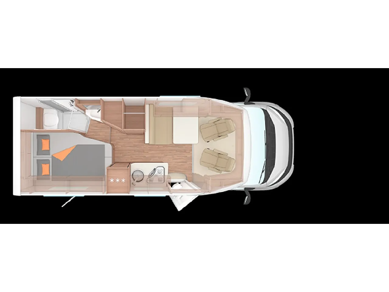 | Bettsystem | festes Doppelbett längs |