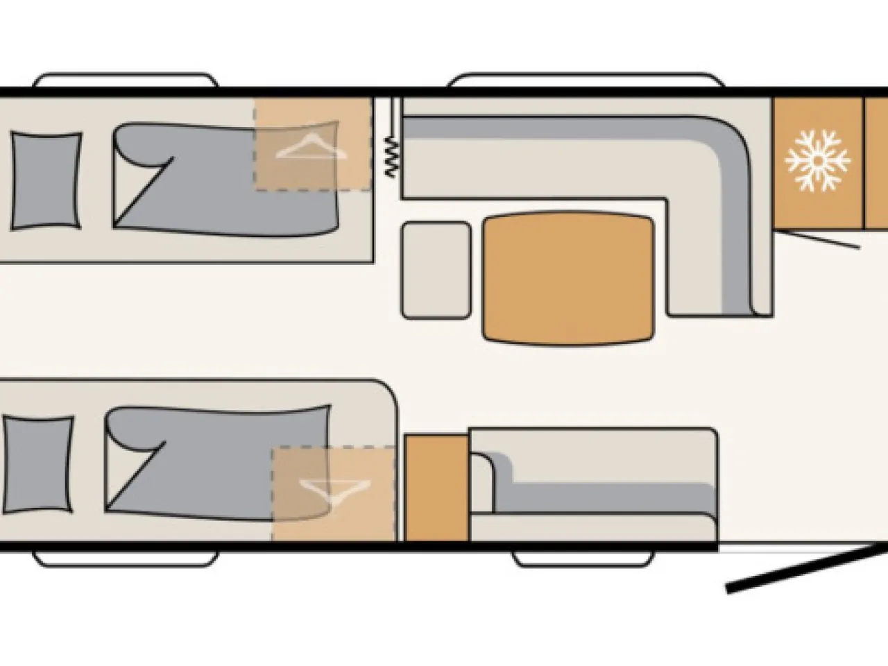 | Bettsystem | festes Doppelbett quer, umbaubare Liegefläche |
