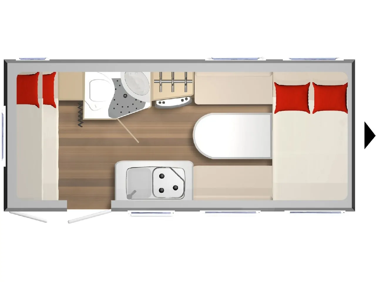| Bettsystem | festes Etagenbett, feste Einzelbetten längs |