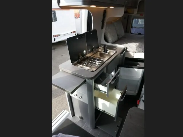 | Bettsystem | festes Doppelbett quer, umbaubare Liegefläche |